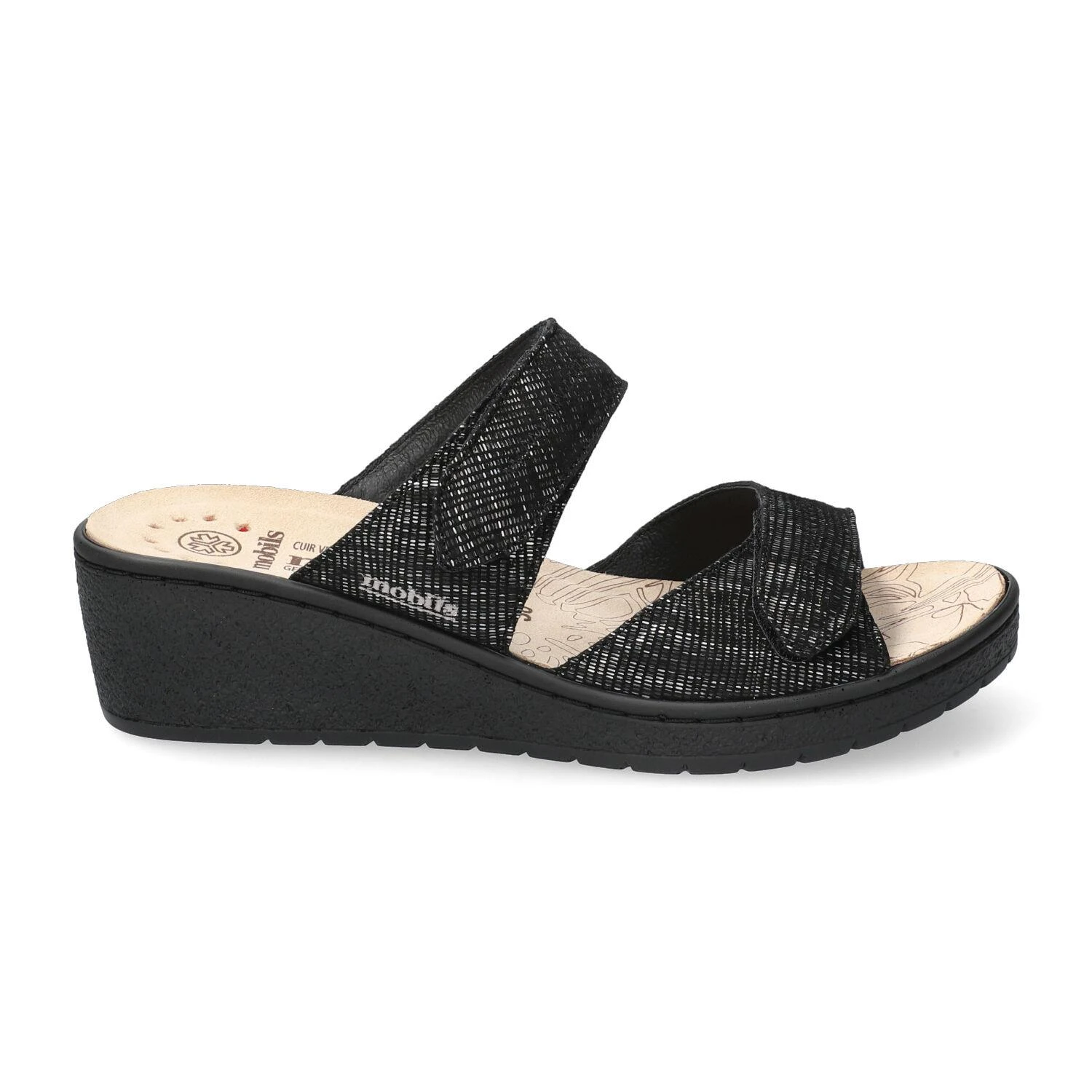 La chaussure confortable mule femme modèle Paula dispose d’une semelle amovible pour l’insertion éventuelle d’une semelle orthopédique
